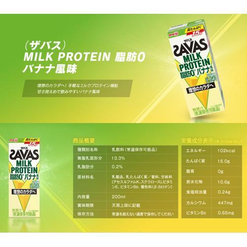 4ケース 明治 savas ザバス milk protein 脂肪0 バナナ風味 200ml 24本 4ケース
