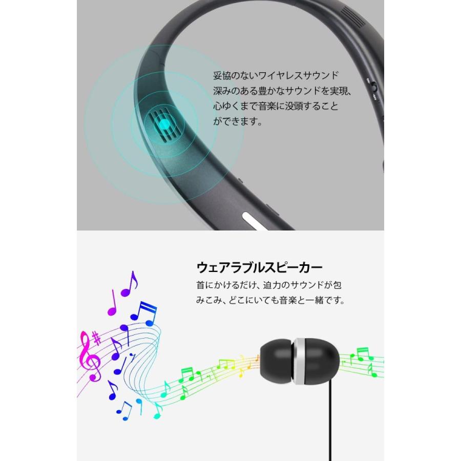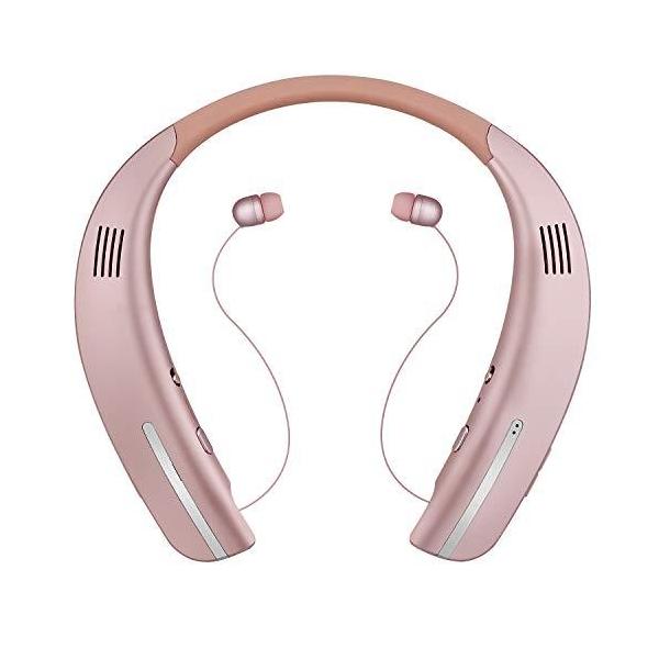seobiog bluetooth イヤホン スピーカー 一台二役 ウェアラブルネックスピーカー 長時間連続再生 高音質 ブルートゥース イヤホン メーカー1年保証 マイク付き ハンズフリー通話 ワイヤレス スピーカー ステレオヘッドセット ピンクゴールド