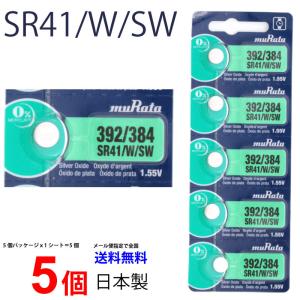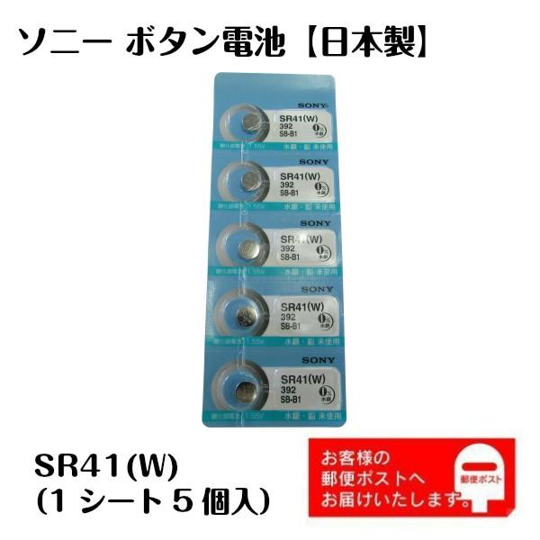 ボタン電池 sony ソニー sr41 sr41w 392 無水銀 1 55v 酸化銀電池 バッテリー デジタル時計 体温計 キーレス 電子手帳 lr41の代用にも 1シート5個入り