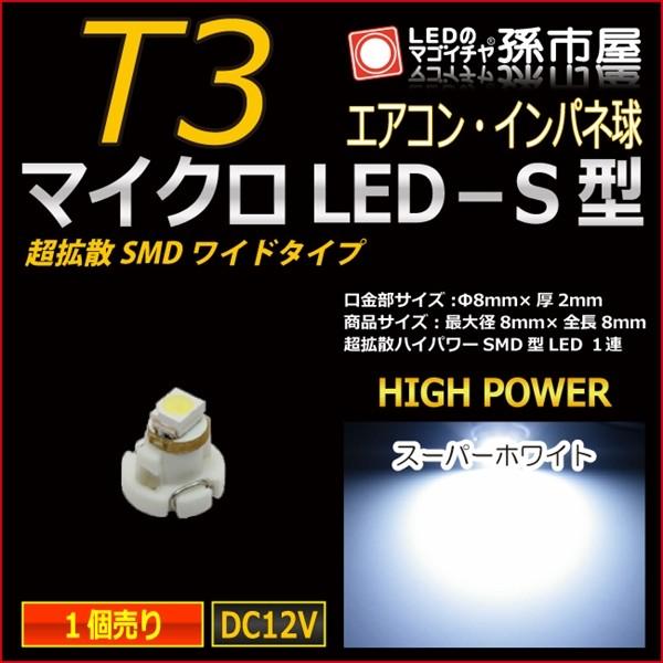 led t3 マイクロled s型 smdワイド超拡散タイプ ホワイト 白 孫市屋 メーター球 インパネ エアコン メーター ランプ 1球単品
