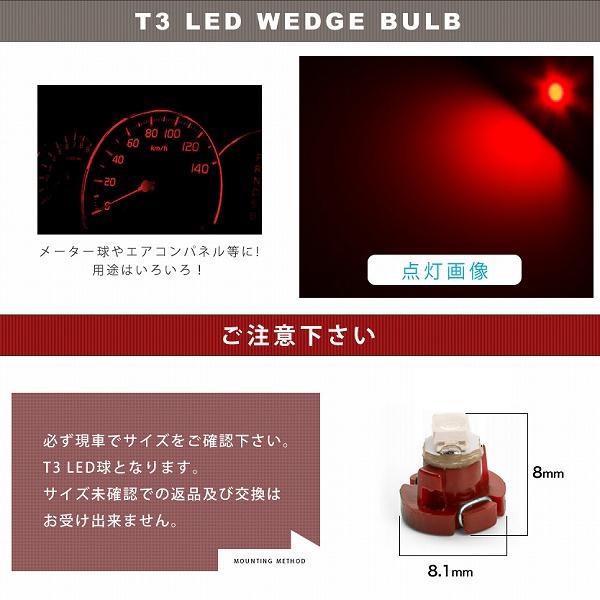 10個セット 12v車用 t3 マイクロ led カラーレッド 赤 メーター球 エアコンパネル インパネ