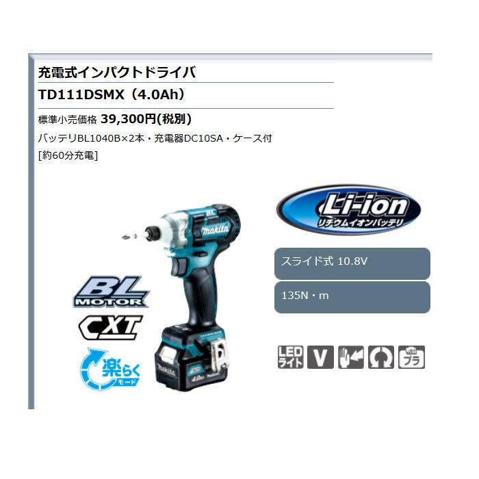 マキタ 10 8v 10 8v 4 0ah 充電式インパクトドライバtd111dsmx マキタ フルセット 青 m01 diy 工具 ダイレクトコム protool館