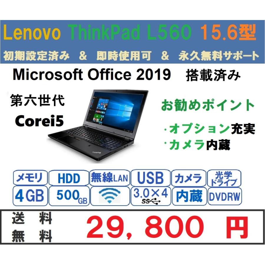 セール ノートパソコン 中古パソコン 美品 lenovo thinkpad l560 windows10 microsoftoffice2019 第6世代corei5 新品ssd240gb メモリ4gb bluetooth