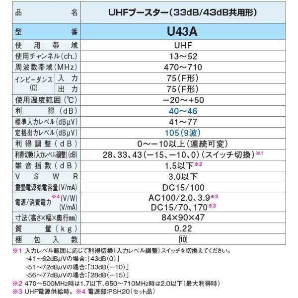 dxアンテナ uhfブースター 33db 43db共用形 u43a bu433d1相当品