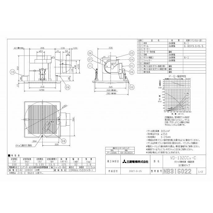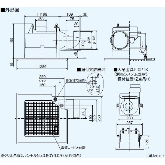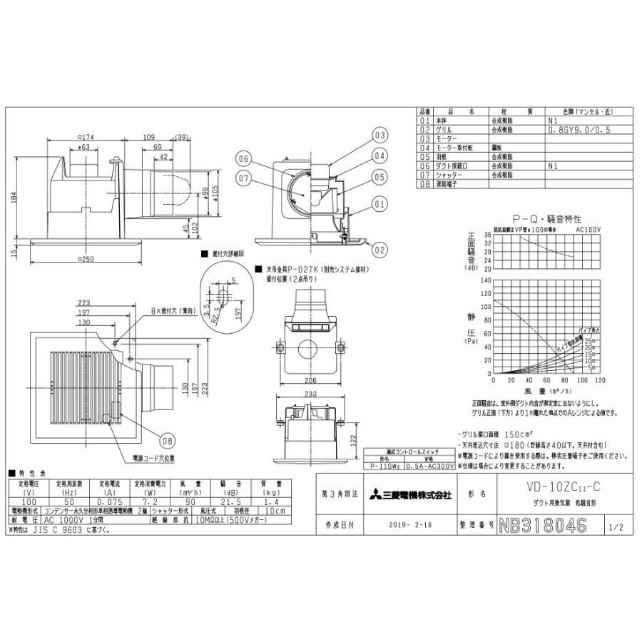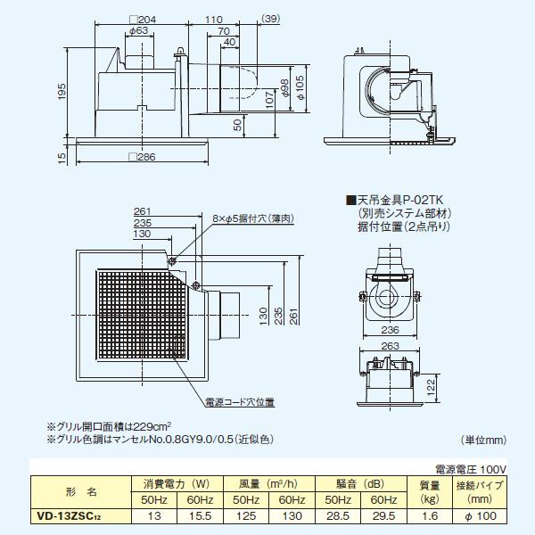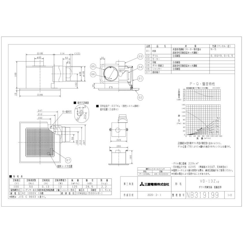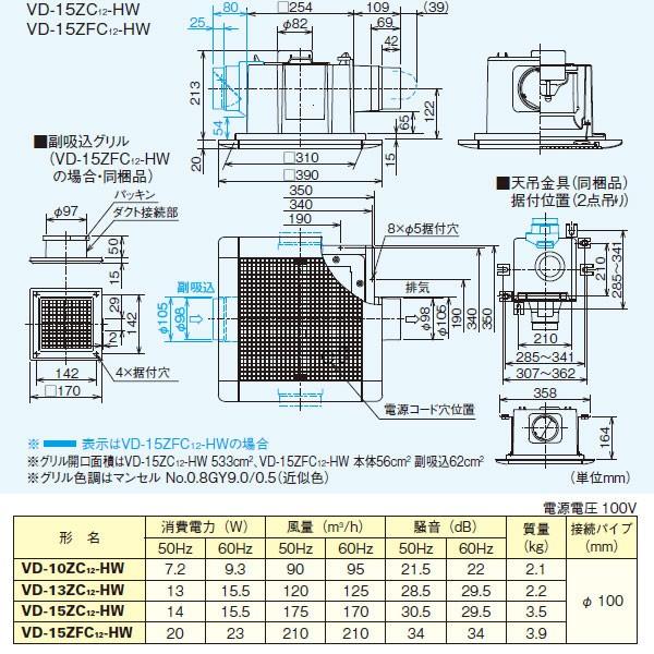 三菱 vd 15zc12 vd15zc12 天井換気扇 埋込寸法260mmタイプ パイプ100f vd 15zc10後継機種