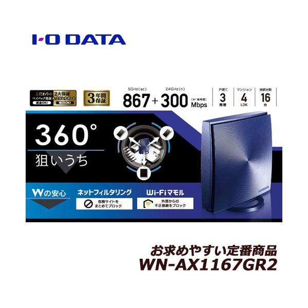 無線lanルータ アイオーデータ wn ax1167gr2 wn ax1167gr2 360コネクト搭載867mbps 規格値 対応wi fiルーター