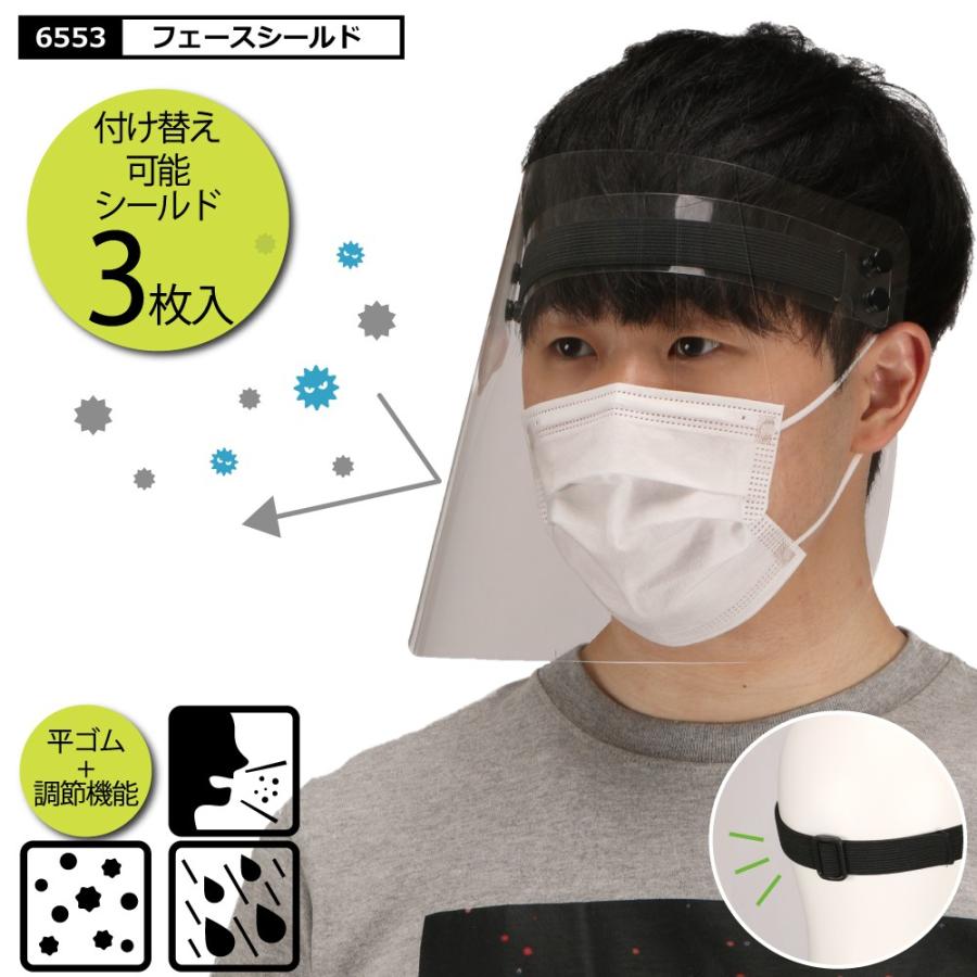 フェイスシールド フェイスガード 飛沫 飛沫防止 飛沫対策 感染対策 交換 交換可能 透明 雨よけ レインバイザー 大型 6553 フェースシールド 3枚入り 575966 カジメイク公式 ワーカービー 通販 yahoo ショッピング