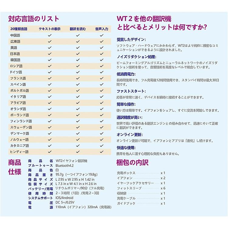 36言語のリアルタイム双方向翻訳が可能 イヤホン型翻訳機 wt2 plus