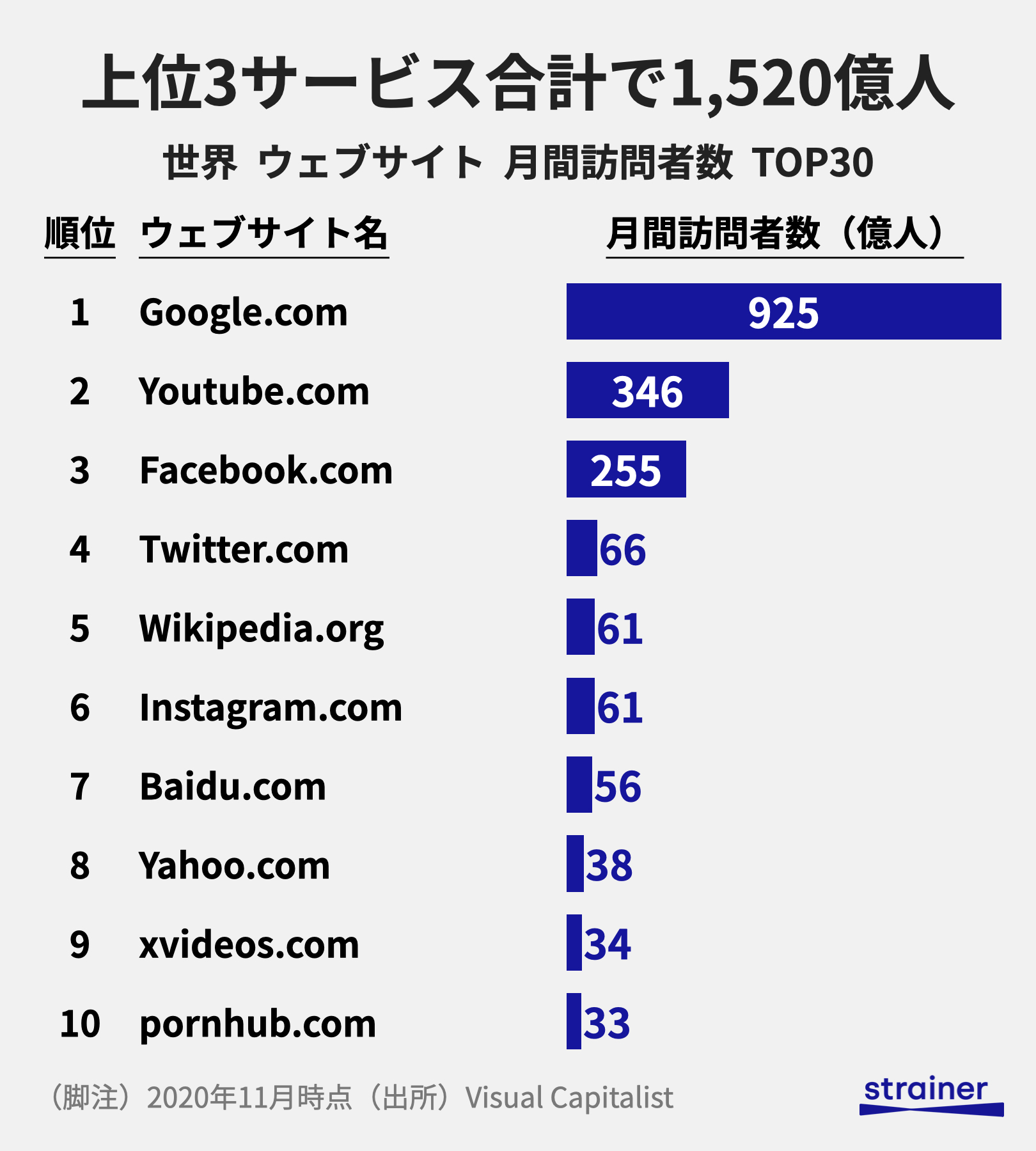世界でアクセス数の多いウェブサイトトップ100をマップにしてみたら 意外な勢力図が見えてきた finders