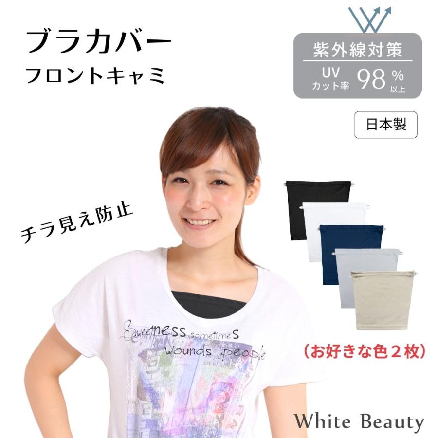 フロントキャミ 2枚組 ブラカバー 谷間隠し ブラ隠し 暑さ対策グッズ キャミソール ブラック ホワイト グレー ネイビー ブラに取付タイプ front cami2 ホワイトビューティー ヤフー店 通販 yahoo ショッピング